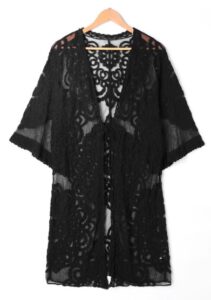 Narzutki tego typu od dawna cieszą się dużą popularnością. Stanowią ideale uzupełnienie wakacyjnej garderoby. Możemy się nimi obwinąć dosłownie w kilka sekund i spokojnie zejść z plaży w stronę baru czy sklepu. Nie ma co ukrywać, ciągłe ubieranie się i rozbieranie na plaży nie jest nikomu na rękę. Zamiast moczyć ubrania wystarczy narzucić na siebie takie kimono i przewiązać się w pasie.